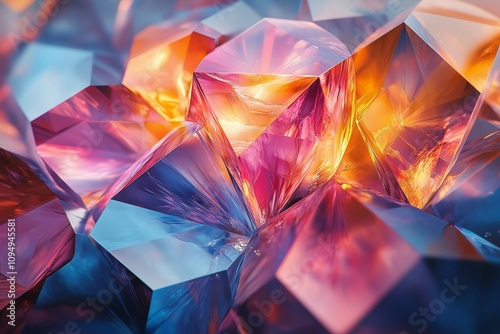 A captivating display of glittering crystals glowing in radiant pink and orange hues, creating a magical and enchanting atmosphere.