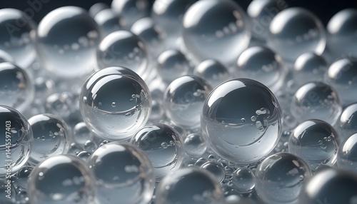 A captivating macro shot of clear glass spheres with a smooth surface and stunning reflections.