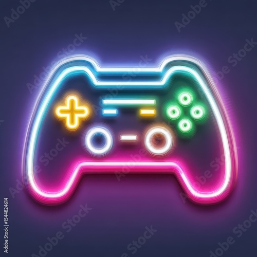 A captivating neon icon represents gaming with a glowing graphic of a controller. The vibrant colors illuminate the dark backdrop, emphasizing its modern appeal