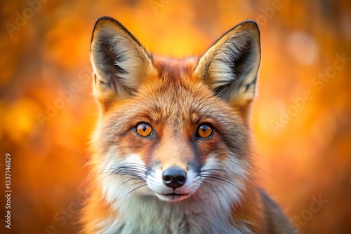 A captivating red fox, eyes gleaming with autumnal fire, stands serene against a blurred backdrop of warm, golden foliage, bathed in soft natural light.