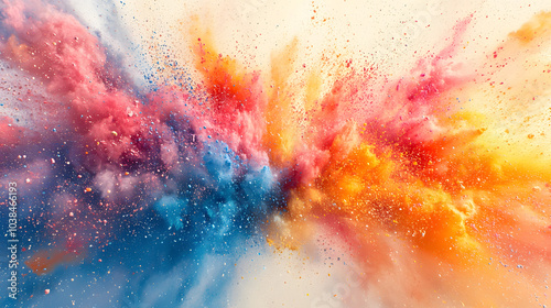 A Captivating Scene of a Brilliant Explosion of Colored Powders Set Against a Pristine Transparent Background