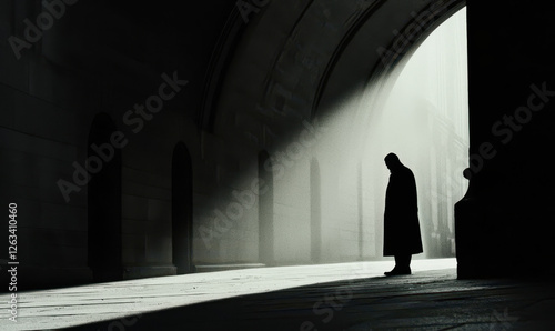 A Captivating Silhouette in Ethereal Light: Exploring Themes of Solitude and Mystery in Urban Architecture
