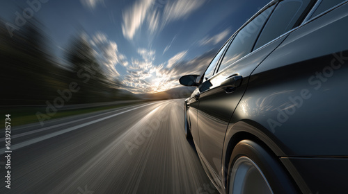 A car driving smoothly on a clear road under a sunny sky, with a sense of effortless journey, implying worry-free travel. 3d illustration.