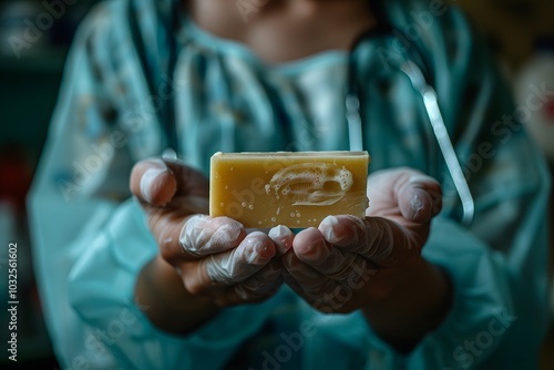 A Caregiver Holding a Bar of Soap, Emphasizing Hygiene and Health