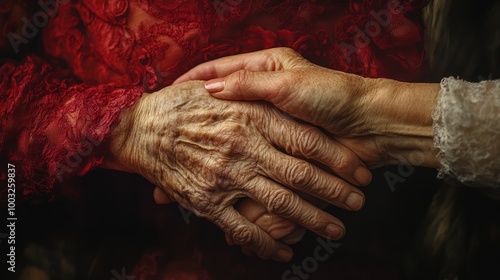 A caregiver's gentle touch reveals the profound bond and warmth shared with an elderly companion.