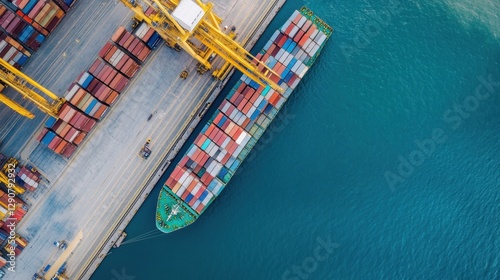 A cargo freighter docking at an international shipping terminal