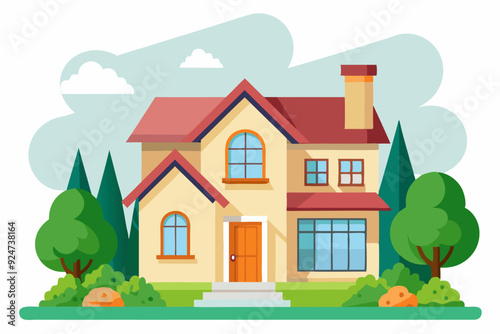 A Cartoon Illustration of a Two-Story House with a Red Roof