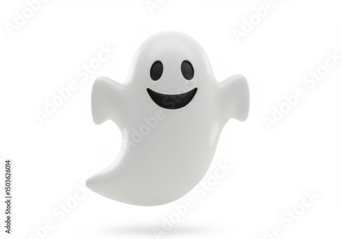 A cartoonish apparition with a cheerful expression against a plain backdrop