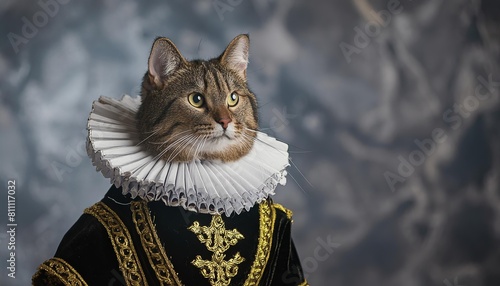 A cat dressed in renaissance medieval fantasy attire, embodying the surreal concept of emperor-like aristocracy