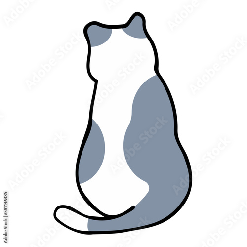A cat in an outline style character design and a flat design style minimal vector illustration.