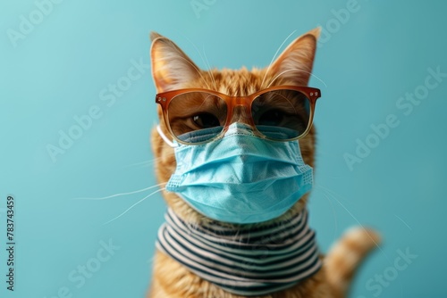 A cat using a mask isolated blue background