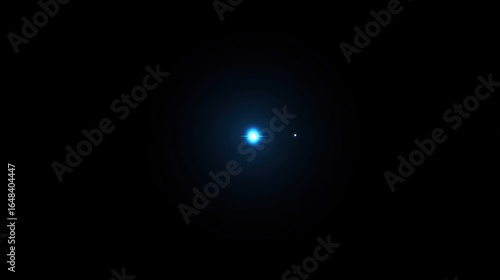 A central, bright blue light source, surrounded by a soft glow, on a black background