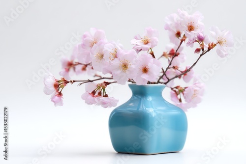 A ceramic vase filled with fresh spring flowers, standing out against a white surface.
