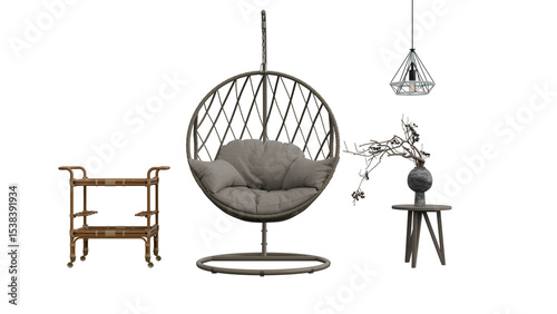 a chair table and chair with a vase on it