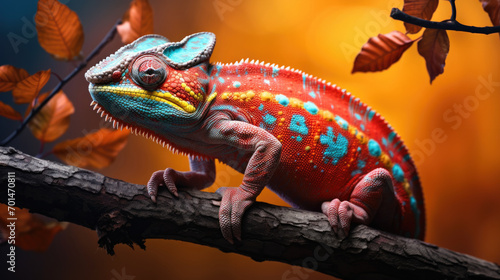A chameleon on a branch with vivid colors seamlessly blending with its surroundings generative ai