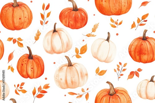 A charming and delightful seamless pattern featuring beautiful pumpkins and vibrant autumn leaves in warm shades, making it perfect for November celebrations and festive, seasonal designs