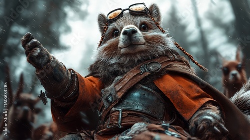 A charming, anthropomorphic creature dressed as an adventurer waves from the forest, showcasing a delightful blend of fantasy and nature, representing friendship, courage, and the joy of exploration
