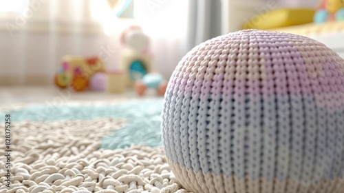 A charming baby room featuring a plush baby couch surrounded by colorful toys, with soft pastel walls and whimsical decorations creating a playful and inviting atmosphere.