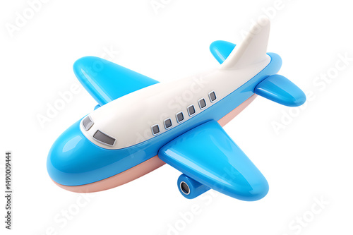 A Charming Blue and White Toy Airplane Model Isolated on transparent background, cutout
