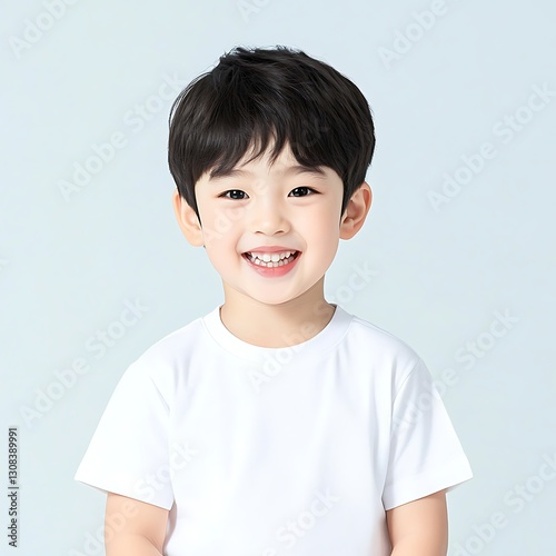 A charming child in a simple white t-shirt exuding innocence and curiosity