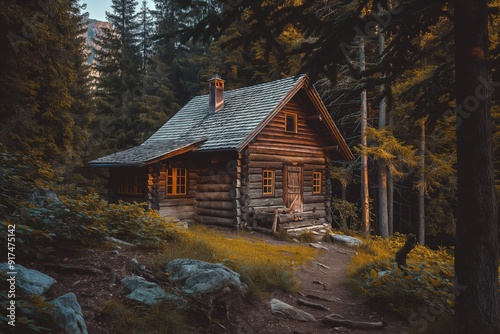 A charming wooden cabin nestled in a lush forest setting, perfect for nature lovers seeking tranquility and comfort.