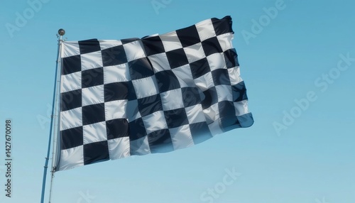 a checkered flag waves against the sky, signaling the race finish and a taste of victory in the speed-fueled competition