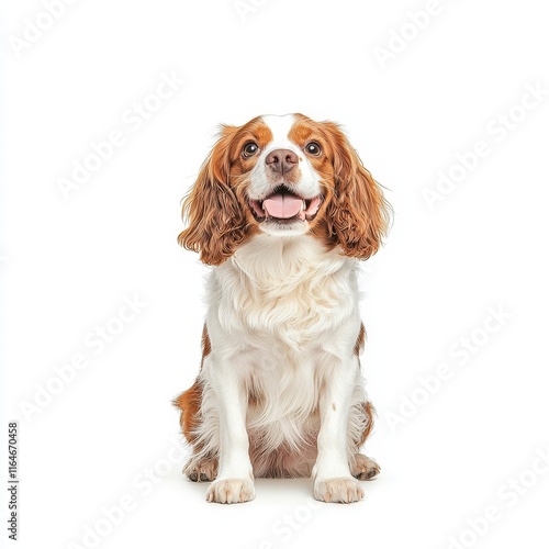 A cheerful and friendly Cavalier King Charles Spaniel sitting calmly, showcasing its playful personality and beautiful fur coat.