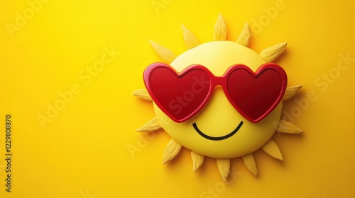 A cheerful cartoon sun wearing heart-shaped sunglasses for a bright Valentine Day theme