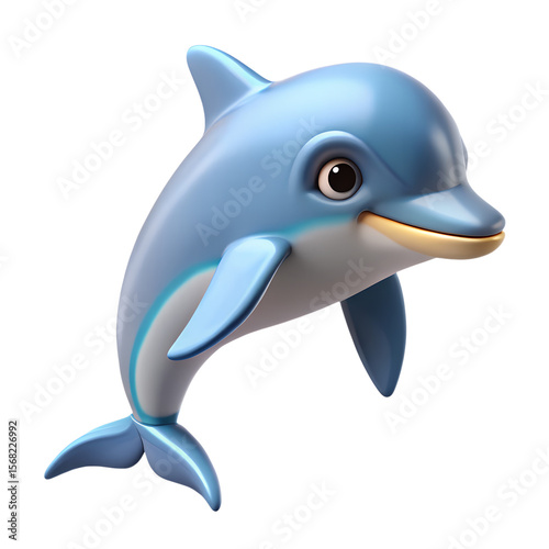 A cheerful light blue dolphin with a white belly isolated on transparent background