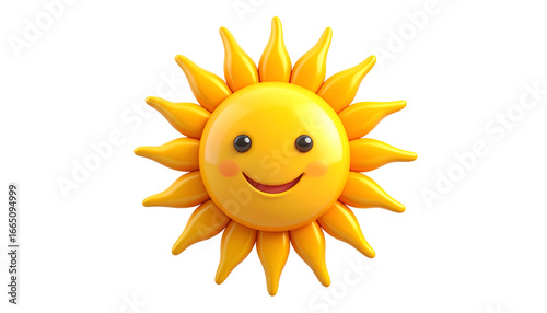 A cheerful sun with a smiling face radiates warmth, its bright yellow petals extending outwards in a welcoming and joyful manner.