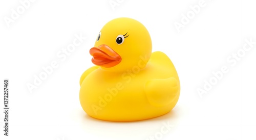 A Cheerful Yellow Rubber Duckie Posing Against a Pristine White Background A Classic Bath Toy for Kids