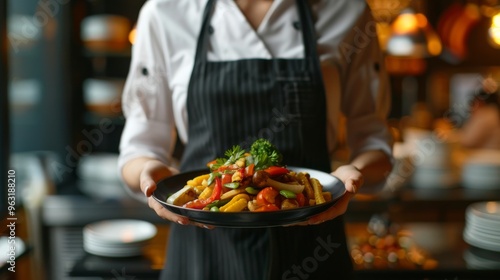 A Chef is Presenting a Beautiful and Delicious Plate of Exquisite Gourmet Cuisine