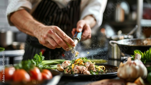 A chef preparing marinade for grilled chicken, blending lemongrass, garlic, and Thai spices for maximum flavor.