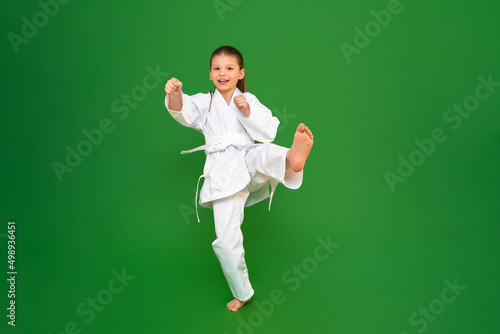 A child in judo training. A little girl studies martial arts, a children in aikido training