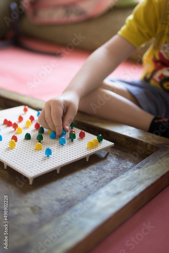 A child of 4 years old collects a puzzle for the development of fine motor skills