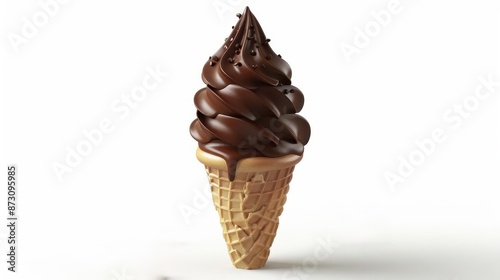 a chocolate ice cream cone, dessert element, 3D illustration, dark chocolate, isolated on white background