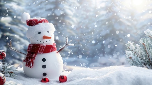 A Christmas snowman set against a snowy white backdrop