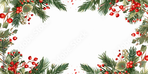 A Christmas tree branch with decorations and holly berries,Generated By Ai