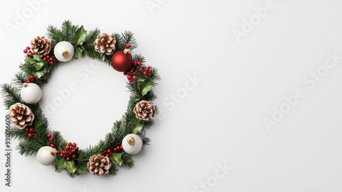 A Christmas wreath with boho chic elements and neutral tones, 3D illustration, isolated on white background