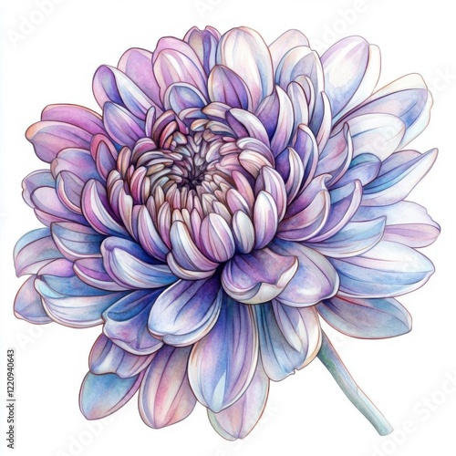 A chrysanthemum flower, intricate floral design, watercolor illustration, isolated on white background,