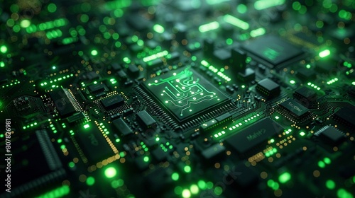 A circuit board with vibrant green lights, resembling a digital ecosystem teeming with life and energy 8K , high-resolution, ultra HD,up32K HD