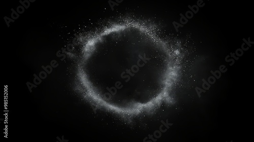 A circular dust explosion in the lower left corner, with particles radiating out in every direction.