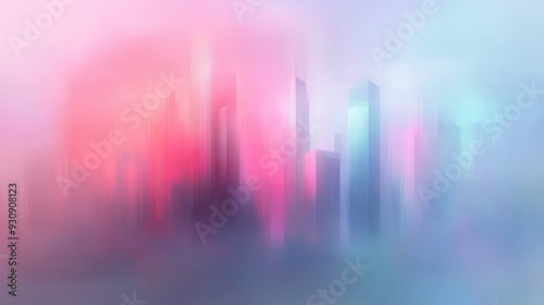 A city skyline with a pinkish hue