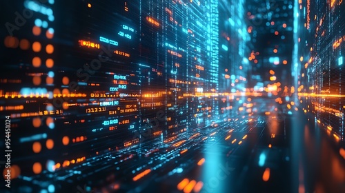 a city with lots of lights and lines