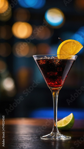 A classic Black Russian Cocktail performed by a brilliant bartender. Creative presentation in neon light.