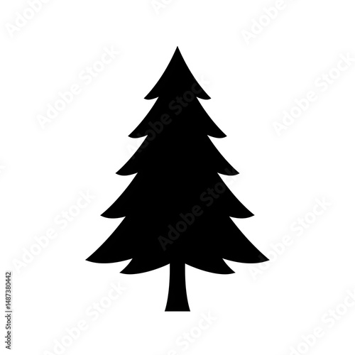 A classic black silhouette of a pine or fir tree with a conical shape and layered branches. Ideal for nature, winter, holiday, or outdoor-themed designs.
