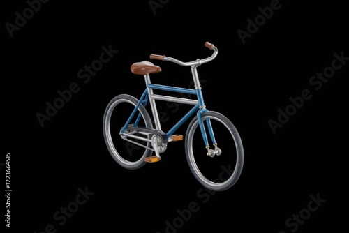 A classic blue bicycle with brown leather seat and handlebars, isolated on transparent background.