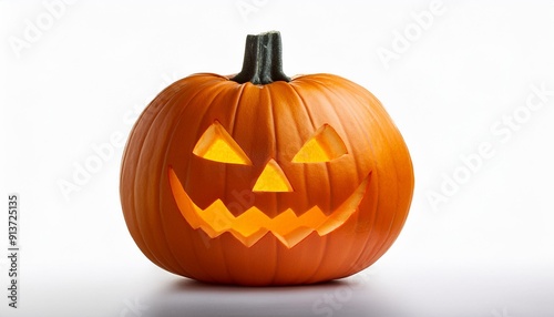 A classic carved jack-o'-lantern with a glowing face, a quintessential symbol of Halloween.