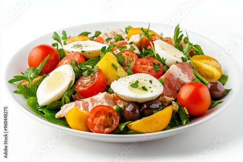 A classic Nicoise salad featuring fresh ingredients like tuna, olives, tomatoes, eggs, and greens. This healthy and flavorful dish is a perfect choice for a light lunch or dinner.