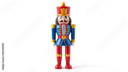 A classic Nutcracker soldier figurine in bright colors, set against a white background, embodying the magic of the Christmas season.